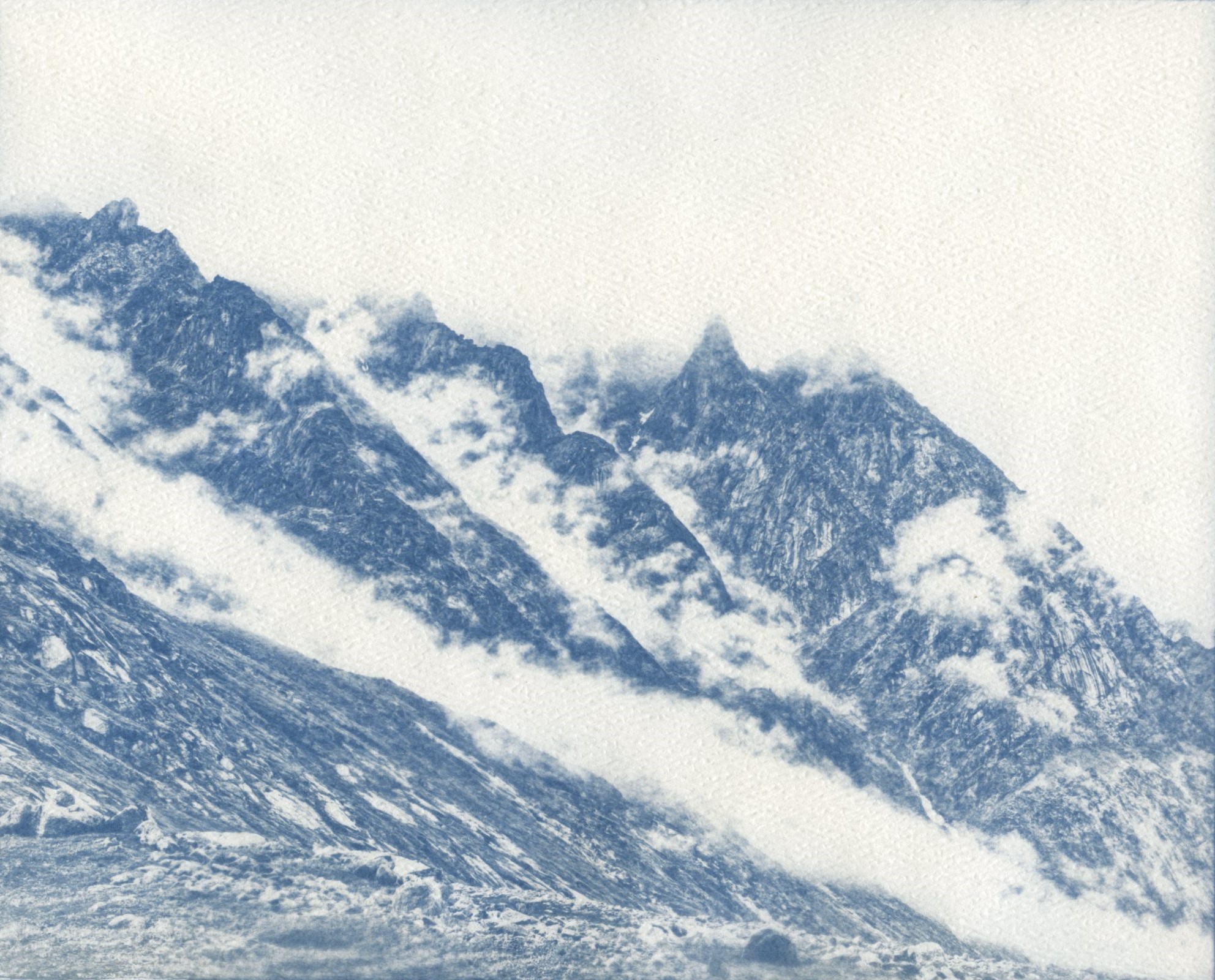 Despite his initial frustrations, somehow the constant clouds obscuring the views and peaks began to resonate with Stephen, he saw them as a metaphor for the loss of his vision and the transience of life; and sought to discover a beauty concealed in the gloom of vanishing peaks and descending cloud banks – a new way of seeing, different from the grand vistas, ultrasharp conventions of landscape photography.